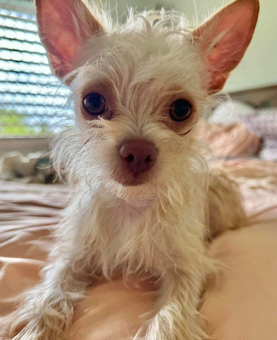 My foster mum says I'm a unique little guy, who once comfortable with his humans loves to cuddle with them (and my foster fur sister)