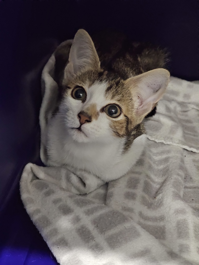 Hey there, I'm Amanda Thripp. I'm a friendly and affectionate kitten who would suit most homes! My playful paws are always ready to pounce on anything that moves. I love playing with wand toys and mysterious shadows on the wall! When I'm finished playing, I love nothing more than finding a warm lap to curl up in.