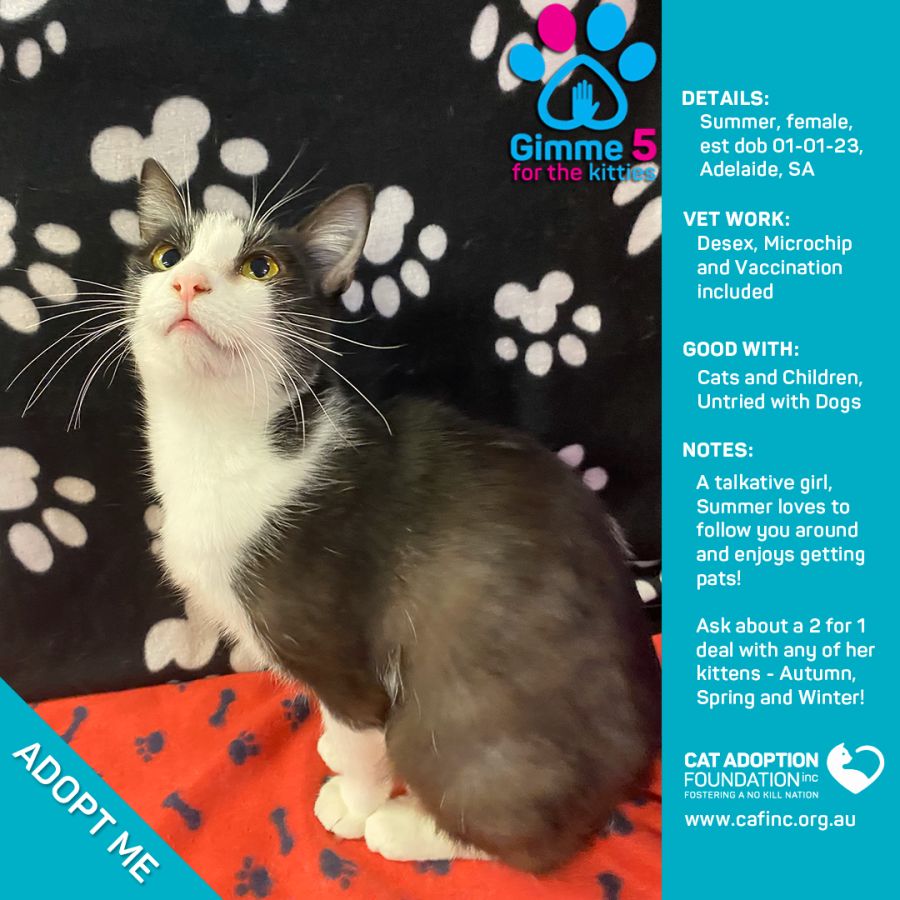 To adopt this kitty please contact Sayla on 0422 652 837 or email us at info@cafinc.org.au.