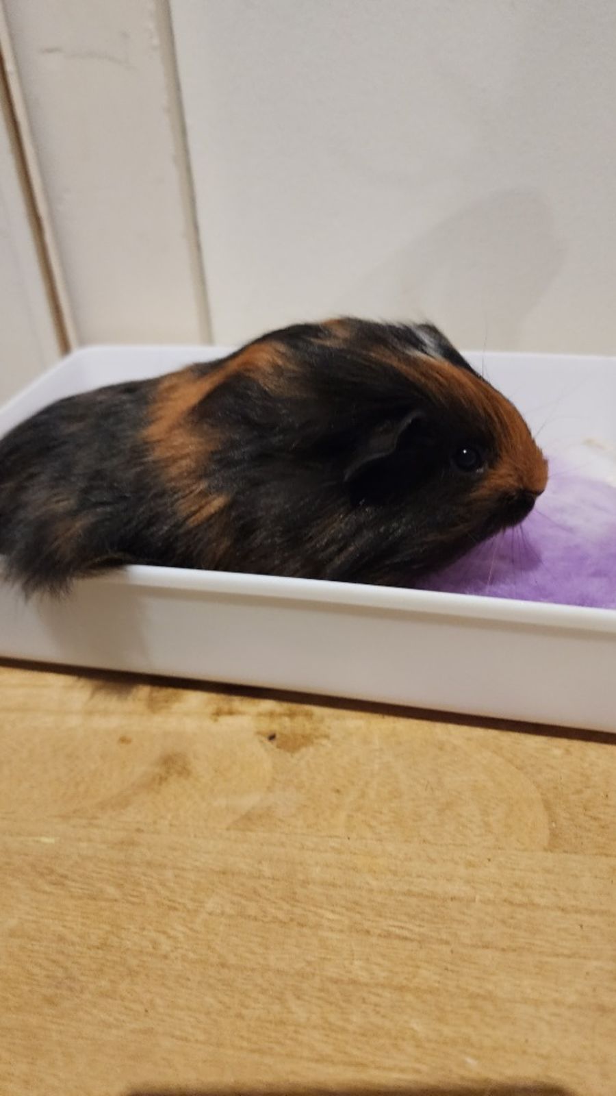 Olympia is a lively baby guinea pig who thrives with a furry friend by her side. He's confident and loves his greens, but he's not keen on being picked up.