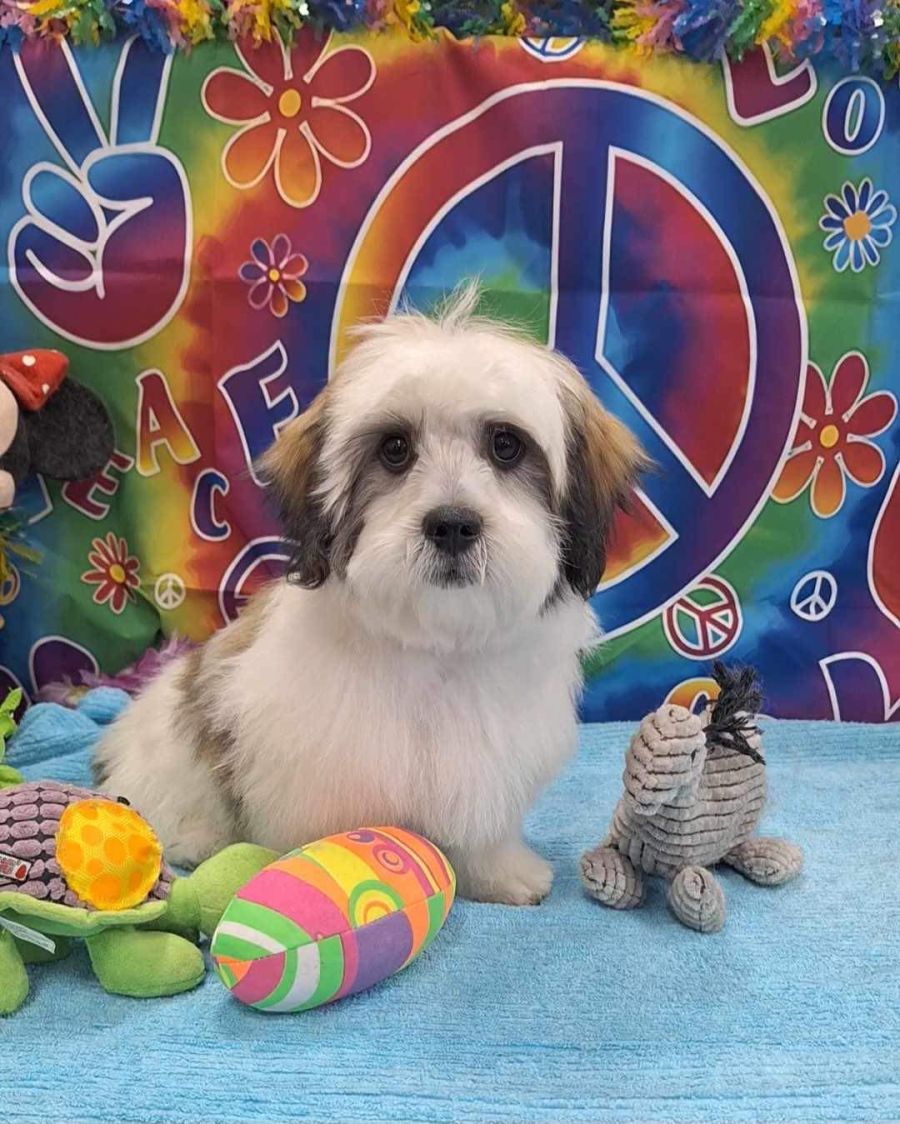 This cute as a button boy is Patch, a sweet and gentle Maltese x Shih Tzu born on 30th December, 2023.