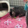 Artemis enjoys playing with wand feathers or amusing herself with toy mice. When playtime is over, she'll look for the nearest soft, warm spot to relax. Lovers of cuddles and warm snuggles will find her company irresistible - Arty adores pats, head bumps are her way of returning the affection!