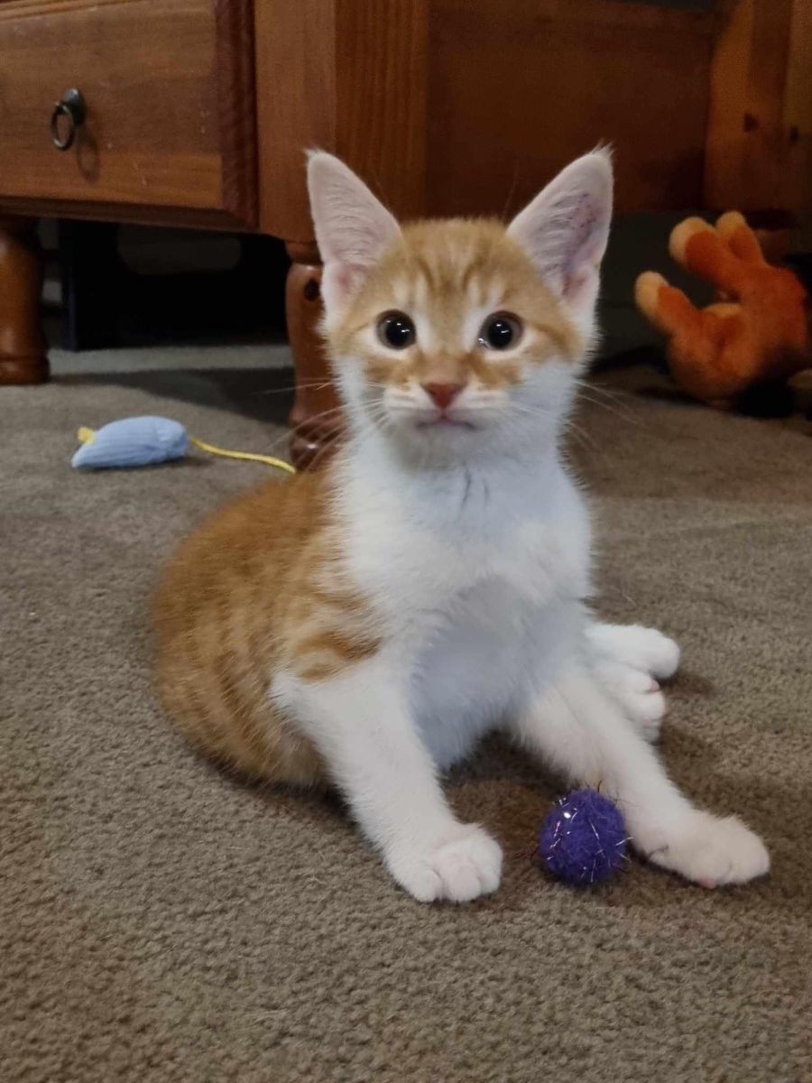 He is currently living with a large dog, adult cats, and kittens.