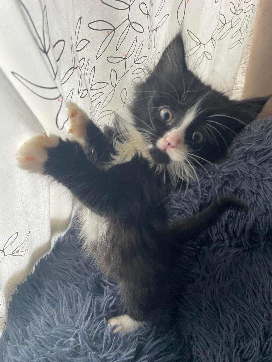 Spaghetti is a big ball of fluff who loves attention. Heโs very quiet compared to his siblings but definitely has his playful moments.