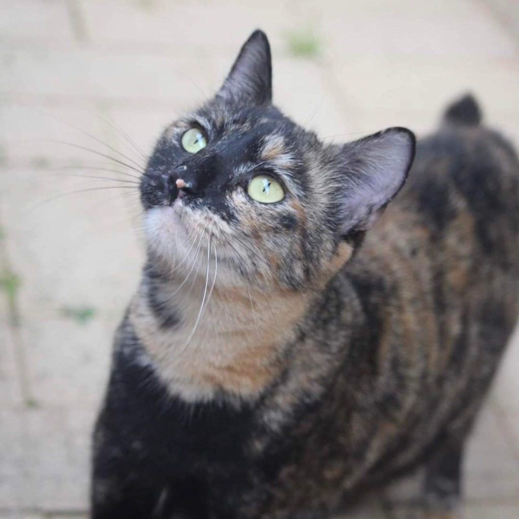 For some reason torties often seem to be cats with a lot of heart and character, and Sunny is certainly a good example! Sunny is a very chatty and smoochy princess who loves all the attention she can get. Scratches, rubs, pats and strokes are all welcomed! She's not used to being picked up but she makes up for that with all her other wonderful attributes.