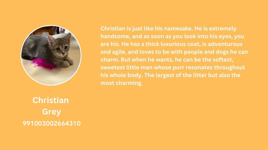 Just like his namesake, Christian Grey is a stunningly handsome gentlemen. His eyes are to die for and you won't be able to look away from him!