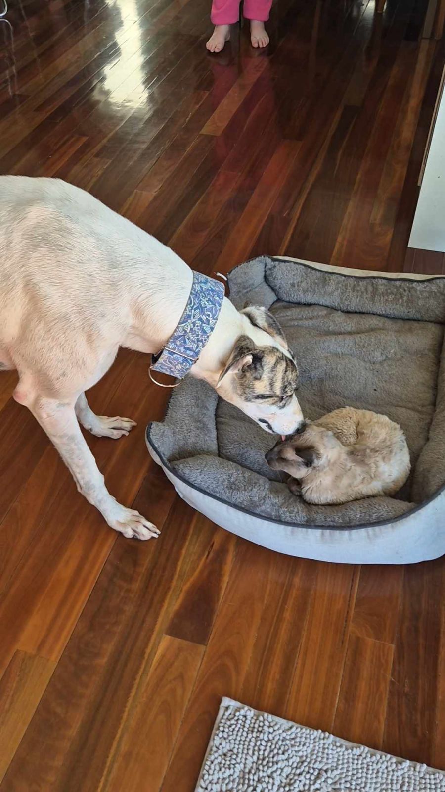 Beau is currently living with two cats and a greyhound with the right introduction could be the perfect addition to any home with kitty cats.