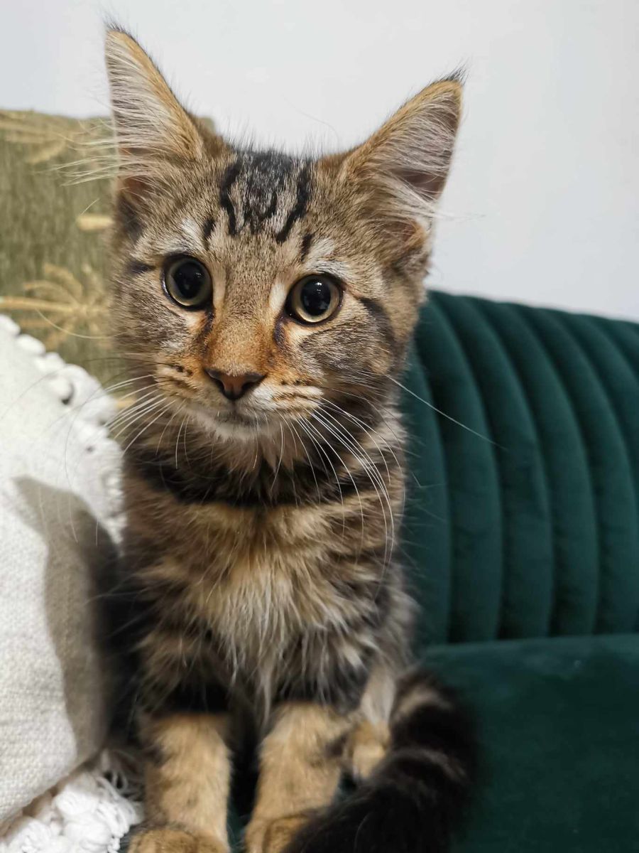 Hansel is a tabby, medium haired kitten. He has the most gorgeous coat, soft with beautiful markings.