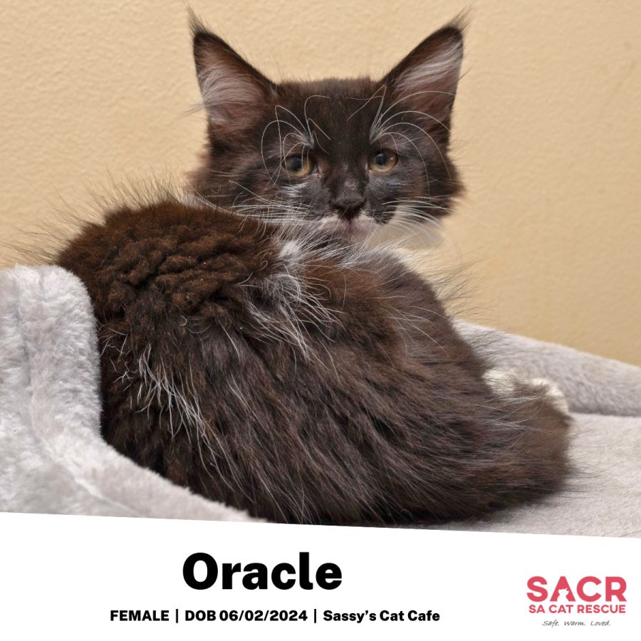 Oracle is a beautiful cat who doesn't mind being pampered with cuddles and petting. She's the type who will roam around and explore but will always come back for a few moments of comfort and warmth in your lap. In essence, she's playful, but also immensely graceful, never compromising her feline poise.