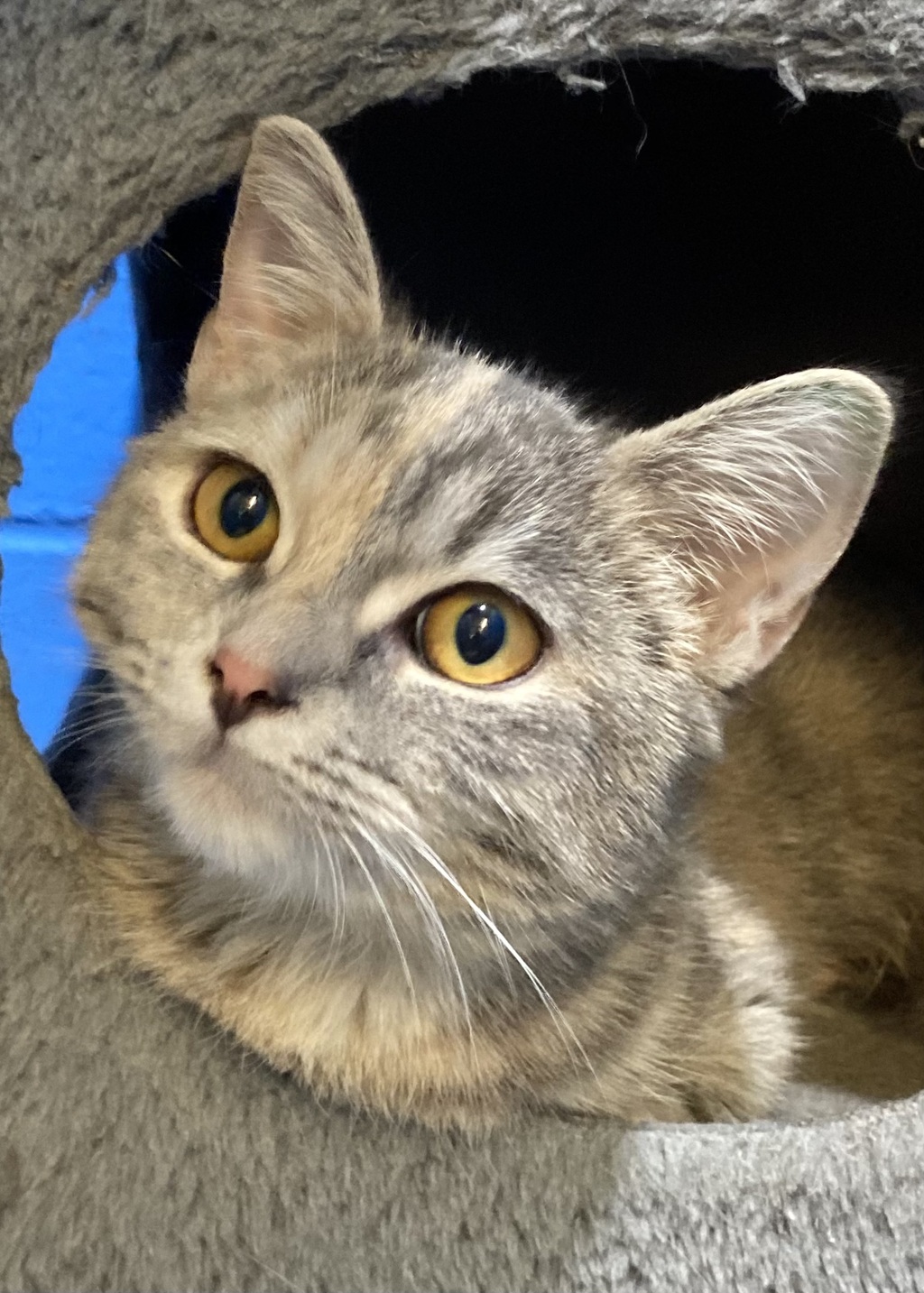 Camellia is a serene kitten ready to bring calmness and joy into your life. She is a gentle soul who thrives in quiet environments, making her the perfect companion for those seeking a peaceful presence in their home.