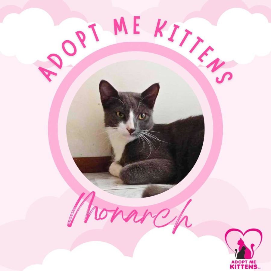 Monarch will need to go to a home with another cat who will be accepting of him as he can get very nervous and will often call out for his foster brothers and sisters if he hasn't seen them for more than 1/2 an hour. Monarch has a lot of love to give but will need the right home to give him time to settle in.