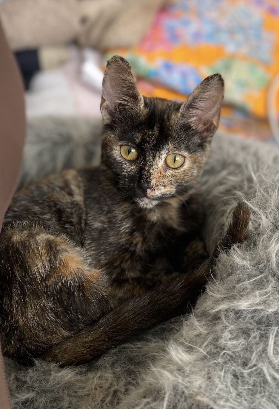Fast forward 3 months and you’ll find Quinn curled up on her humans beds or playing with her toys.