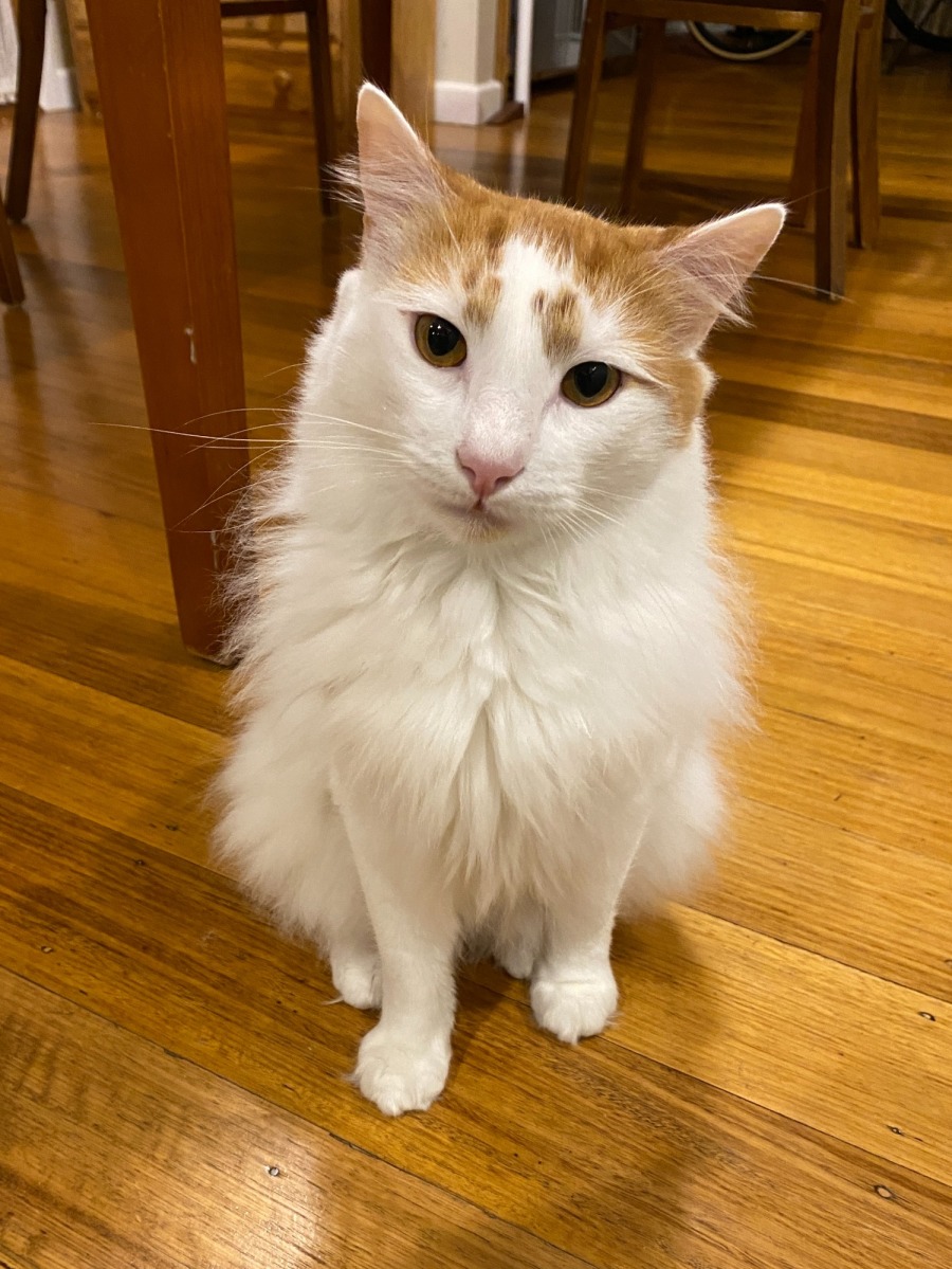 Duke love your companionship but it's very much on his terms. He will rub up against your legs when he's in the mood for attention but when he's had enough to being stroked he will give you a light swat to let you know that's enough. Same thing with hugs. He can be picked up and cuddled for a short duration but will let you know when he's ready to be put down.