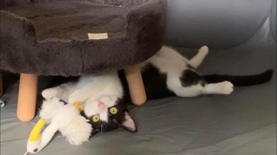 Moo loves creamy treats and playing with her wand toy. She would suit a home with another cat-friendly cat for company, but dogs and noisy kids are probably a bit much for this little one.