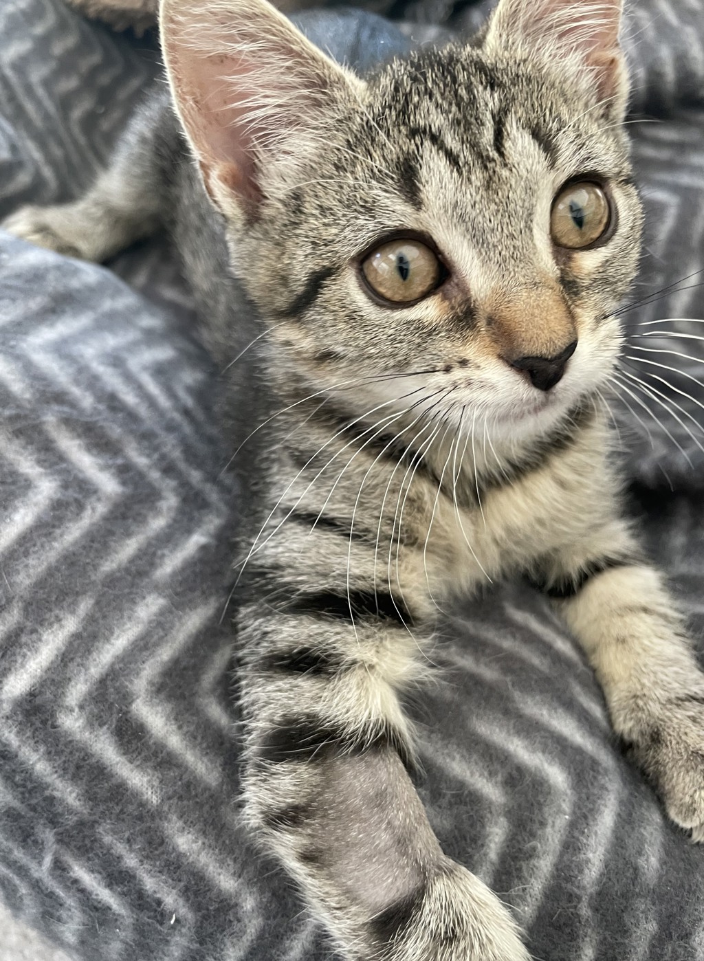 Gracie is a gentle, affectionate girl and purrs loudly when you interact with her. She is always ready for a game but usually looks for a comfy lap when she is feeling sleepy.