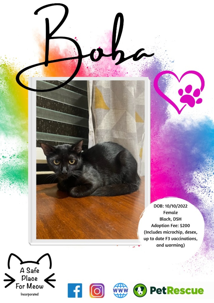 Meet Boba, an undeniable charmer in the form of a fluffy, smoochy pet. Boba is a lady with a sweet disposition who never fails to capture hearts with her endearing gestures of love.