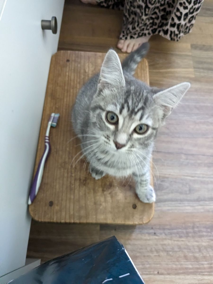 Neptune, her brother, is a sweet boy with a heart as big as his playful spirit. He’s never far behind Luna, always up for a game or a snuggle session. This little gymnast will dazzle you with his acrobatic displays for a feather or string, and when it’s time to relax, he’ll be right there beside you—and Luna, of course!