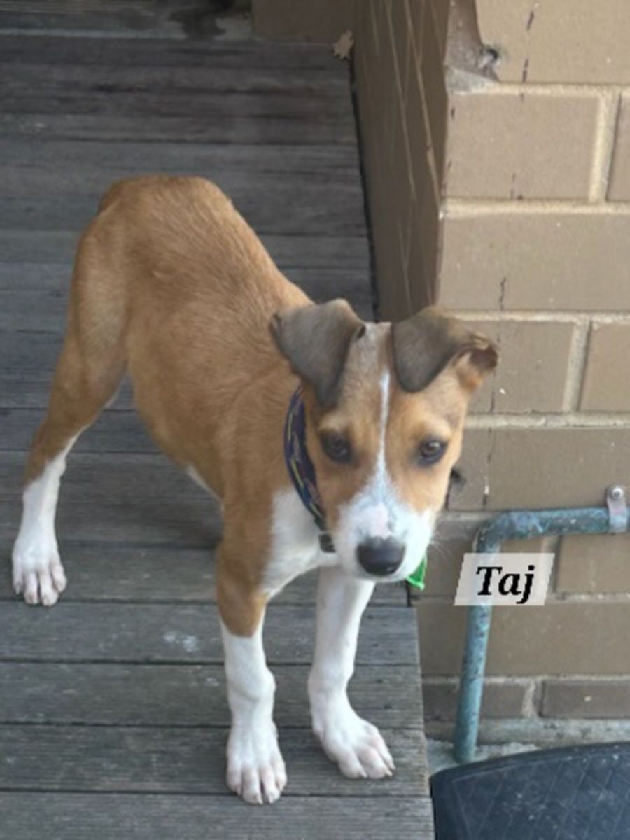 Taj is a energetic puppy full of love. He knows come, sit and stay but will need ongoing obedience training.
