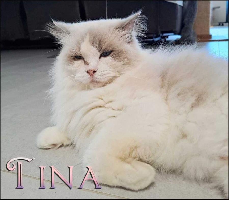 She has the most beautiful blue eyes and such a sweet nature. Tina just wants to laze around, sleep on your bed, eat her food and watch the world go by. She loves watching the other kitties and giving them a good grooming if she can hold them down long enough.