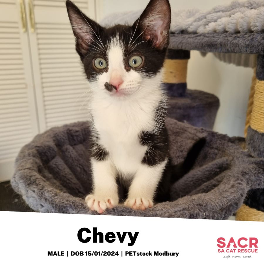 Introducing Chevy, a delightfully sweet, fun, and playful companion who will warm your heart and liven up your home! Chevy is not just your ordinary cat - he draws you in with his irresistible charm and infectious energy.
