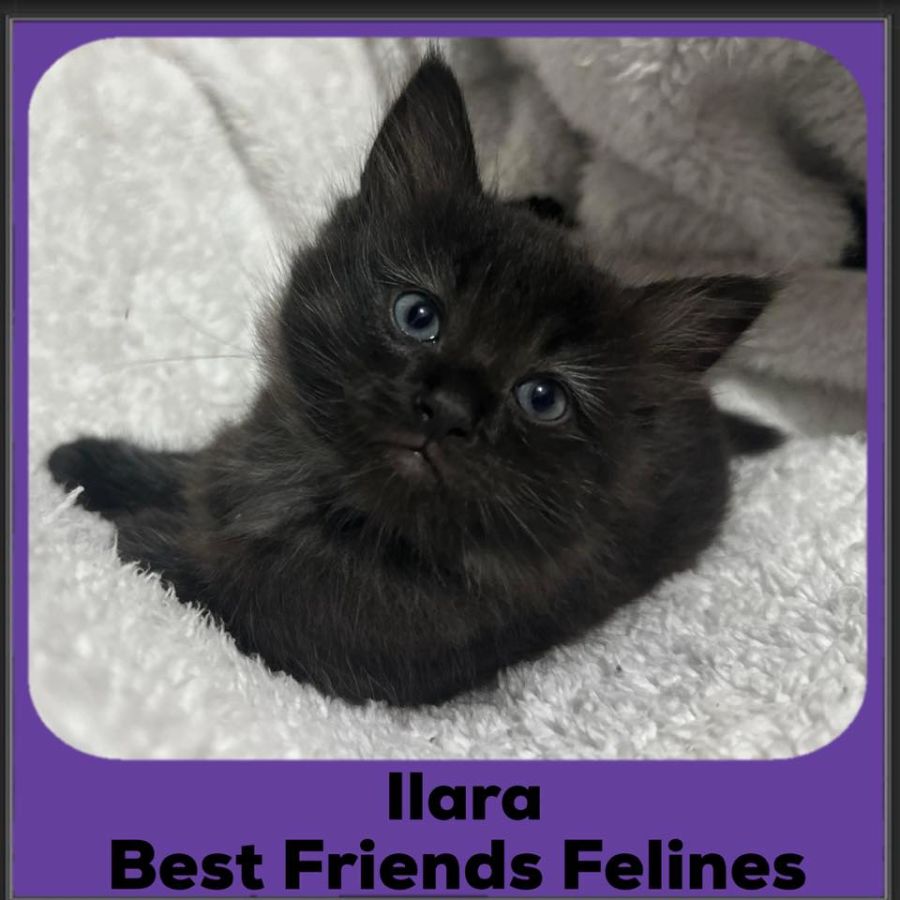 Ilara’s fur appears black at first glance but has swirls of dark chocolate mixed in, and she will need regular brushing as she grows to keep her fur in tiptop condition.