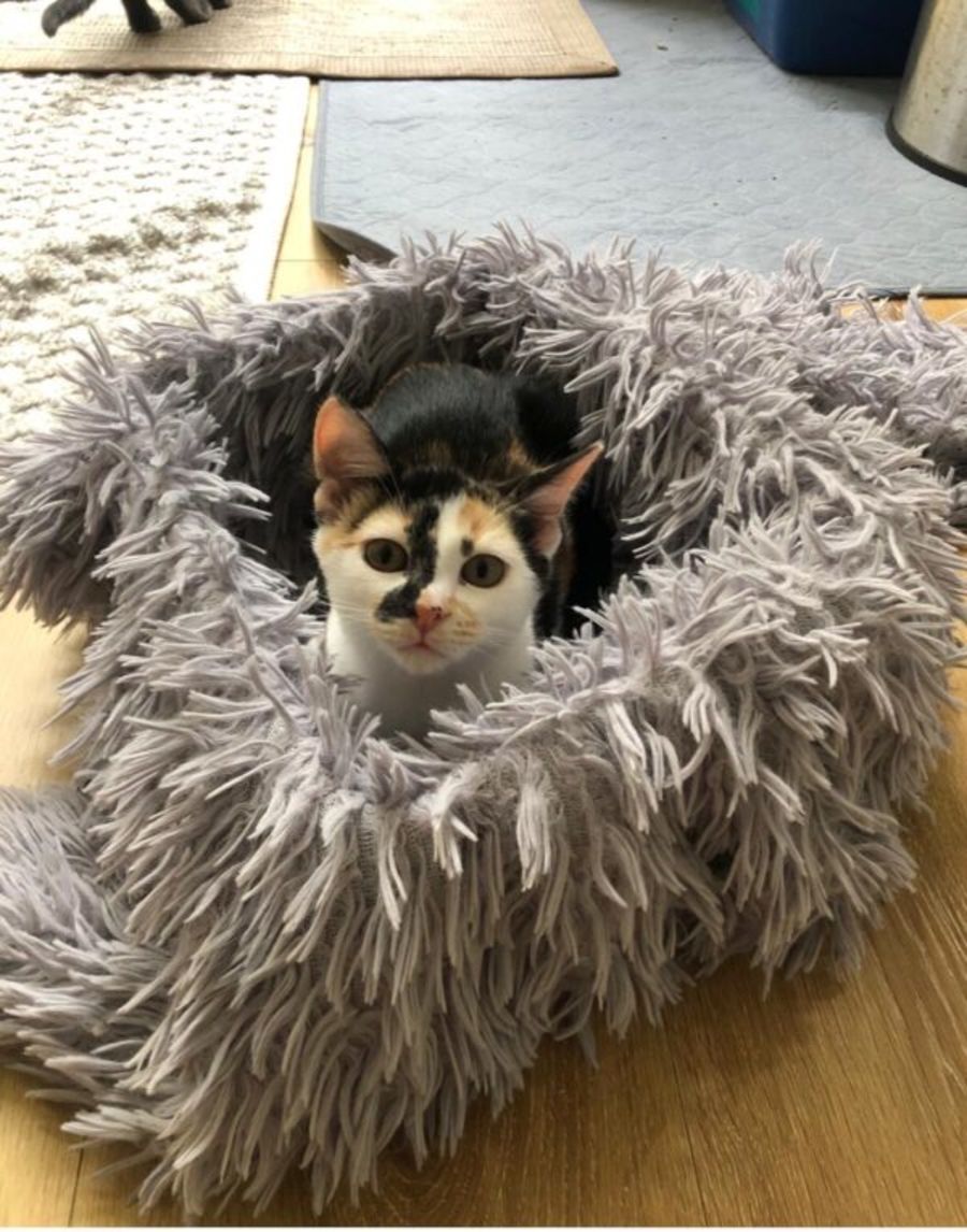 Geisha is a 3 months old kitten who had a rocky start to life with her wild and pregnant mum being found on the side of the road battling the effects of paralysis ticks. One week later, after being saved by the vets, Geisha and her 6 brothers and sisters were born. Her caring humans that found Mum couldn’t leave this new furry family behind so within hours