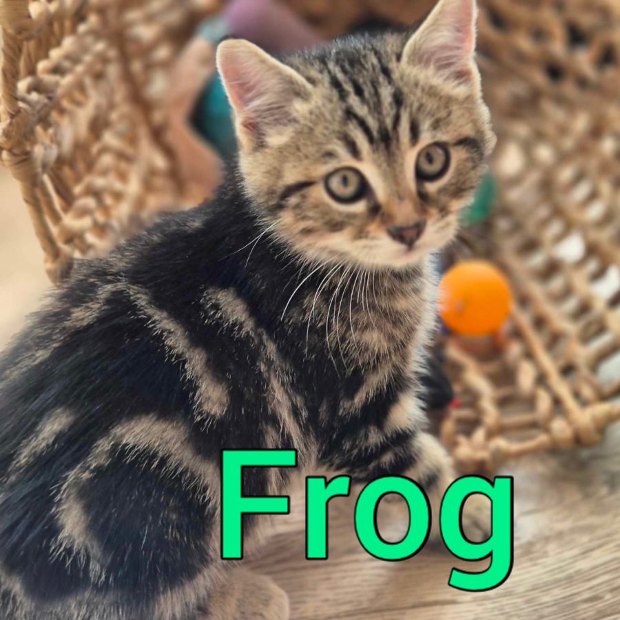 He’s the biggest so he lets them know it! He’s a beautiful boy but a bit of a bullfrog with his siblings - hence the name frog. He just crash tackles his siblings out of nowhere and then runs away to the next one. He’s a lot of fun to have around! He’s adventurous, playful, affectionate and once he’s had enough of playtime - he will find a warm comfy spot and close his eyes.