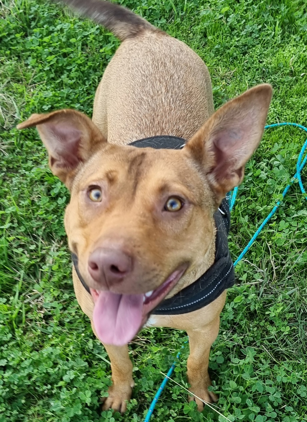 Daisy is an active, playful girl with a big personality to match. Daisy loves to run flat out, play in the sprinkler, and rough and tumble with her dog pals. She can still be a lot for other dogs while playing so a confident owner who will correct this is a MUST! Daisy is walking well on a lead now and just wants to spend time loving on you.