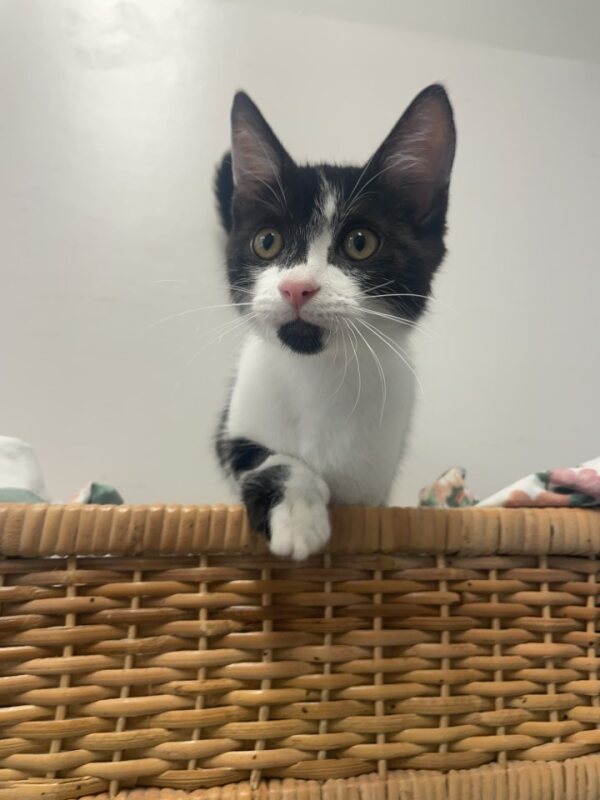 I'm a kitten with a heart full of love and a mind full of curiosity. I'm the kind of guy who loves to explore every nook and cranny, sniffing out fun and adventure wherever I go. I'm friendly and sweet, always ready to share a purr or a playful pounce. My goofy side is sure to make you laugh, and I promise to keep you entertained with my antics. I'm eager to learn and grow with you, exploring the world with wide-eyed wonder. Adopt me, and I'll fill your life with joy, laughter, and unconditional love. I'm not just a pet, I'm a friend for life.