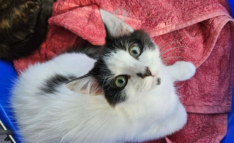 Cruise is a 7 month old male domestic medium hair kitten that is white and black (DOB 13/12/2023). Cruise is best in a quieter home - we don't think he will cope with a house full of children.