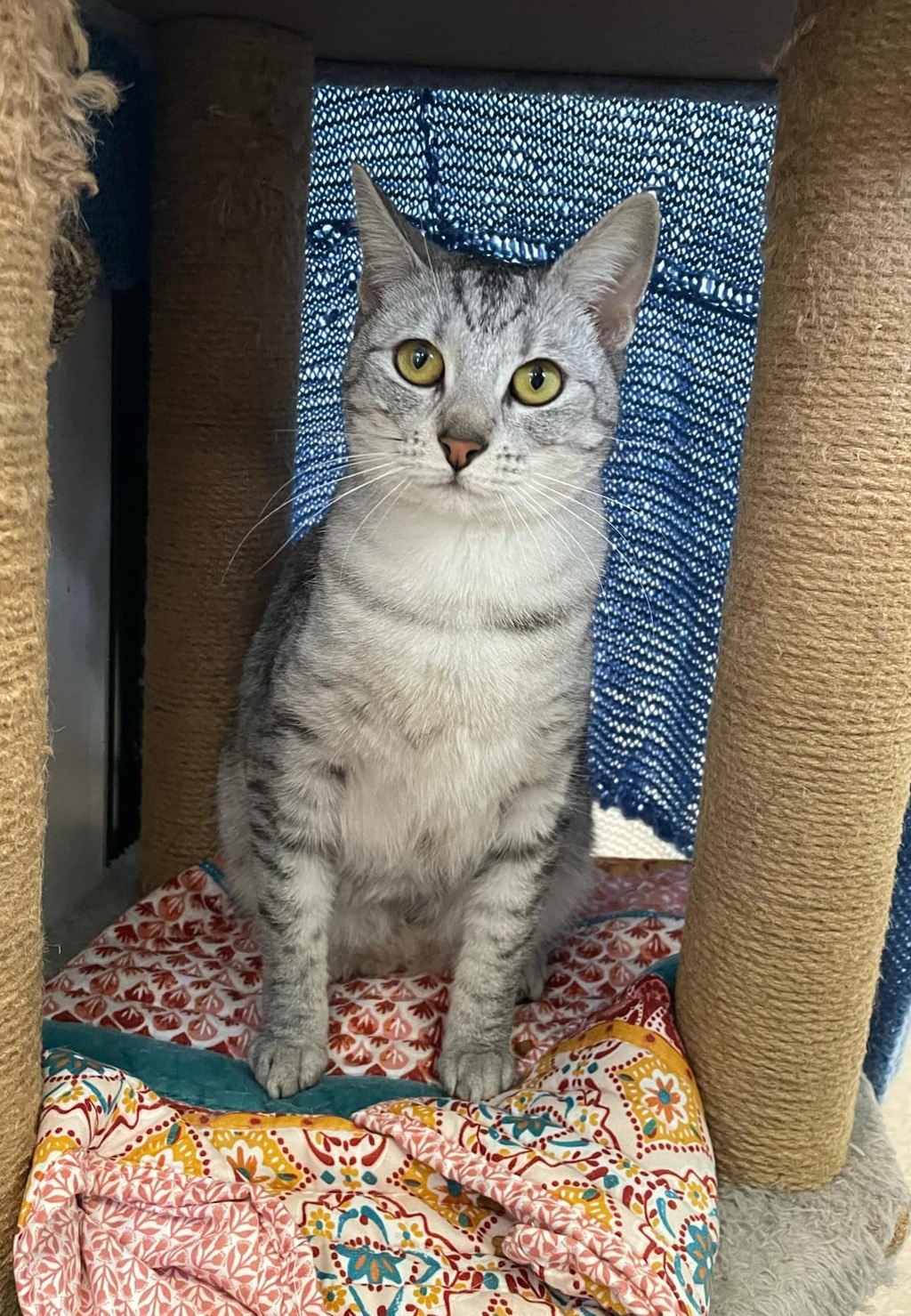 Rosie is our stunning silver tabby/spotty cat who has finally found her voice. With a small meow, she will let you know she can see the bottom of her food dish (that may still contain plenty of food) explaining she clearly hasn't been fed in years.