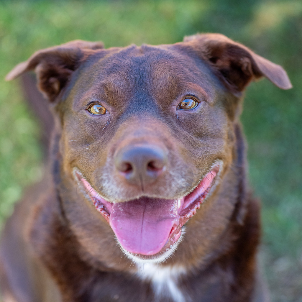 Kaos is a working breed mix with a stunning chocolate coat who waits patiently at the door before being walked through. He is highly intelligent proving he knows just how to please his humans, remaining calm and neutral even when getting geared up for his walkies as he sits and waits on his bed.