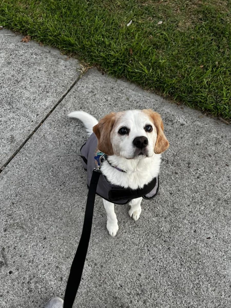 Benny doesn’t mind cats and can accommodate another low energy dog in his life. He is also fine to be left on his own should you have to work in the day, he usually would have a little walk around and then quieten down when he’s back in his bed.