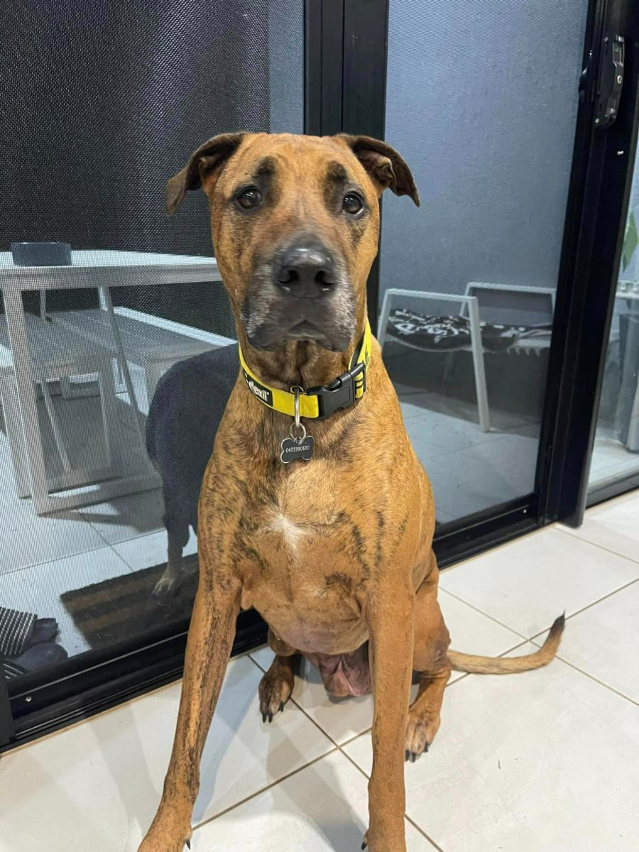 Meet the gentle brindle giant Tiger. He came into care after being surrendered in very difficult circumstances - it is clear he was given a lot of love and care in his former home. He is a bit sad and confused at the moment and will need humans that can help him mend his broken heart.