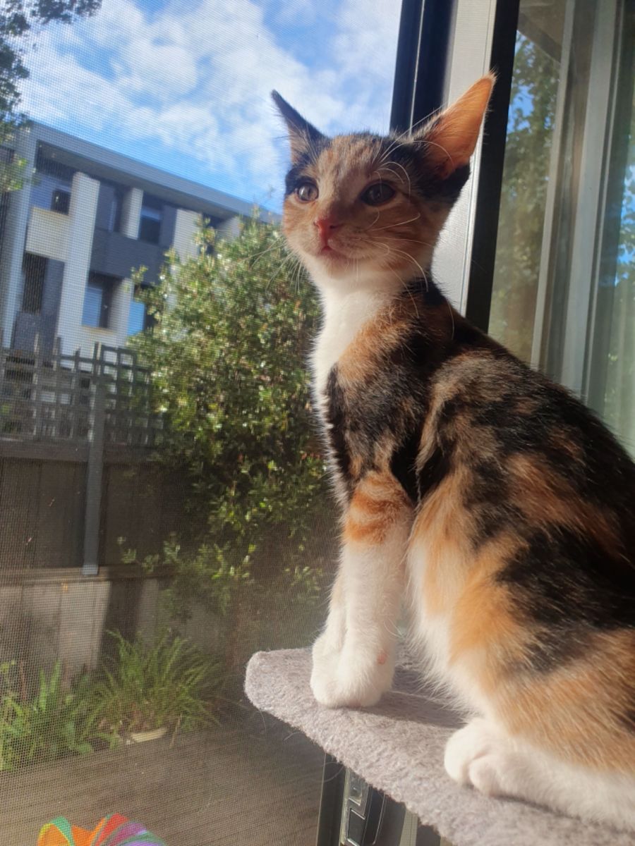 This adorable feline is as much a lover as a player, savouring every moment spent cuddled up with her favourite humans, purring the hours away. She knows how to leave an impression, whether she's actively chasing her toys or stealthily following you around the house, her antics will truly make your day better. Memorably, Lightning has a quirk of her own; she adores to perch on shoulders like a parrot!