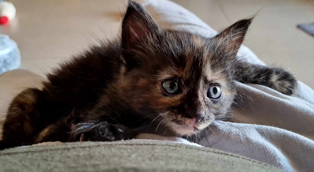 Clodagh was the only female in her litter or 4 - born to stray mumma Grainne who we managed to trap - she has accepted the domestic bliss and fed and raised her babies. Clodagh has bid farewell to mumma - to be a support buddy to kittens Ocean and Emmaline. A lovely little mottled torti - Clodagh is a unique and pretty kitten. A medium coat and will require daily brushing to keep her coat in tip top condition. Clodagh will be ready for her new home after her 8 week health check, vaccination, wormer and microchipping. Clodagh is located in Port Hedland and can fly to Perth for an additional $110 fee.