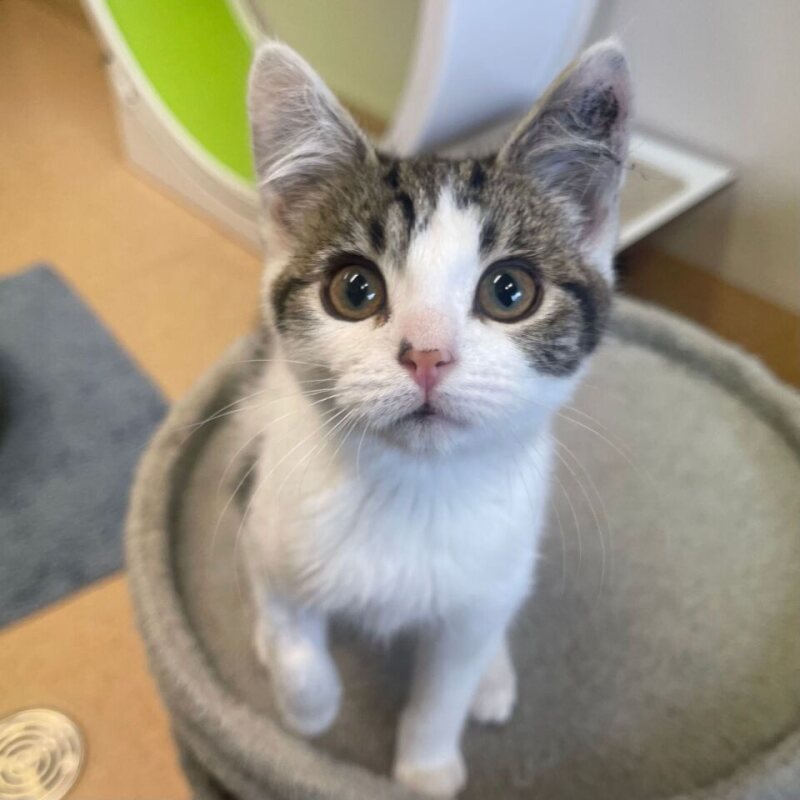 I'm as lively as a button, full of fun and frolic. I love to chase laser pointers, pounce on toy mice, and engage in a friendly wrestling match with my fellow feline friends. My purrs are the sweetest symphony, especially when I'm contently curled up in a warm lap. I'm also quite the social butterfly, always eager to make new friends. My energy is contagious, and I promise to fill your home with joy and laughter. If you're looking for a playful, friendly, and energetic companion, look no further. I'm Penny, and I'm ready to be your forever friend. Indoors Only Cat Flu Waiver