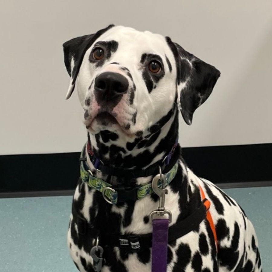 Freddie may start off a bit shy, but his heart is as big as his spots. With a little patience, he warms up quickly, eager to shower you with love. While vet visits can be a tad stressful, Freddie handles them with grace, though he appreciates a gentle touch around his head.