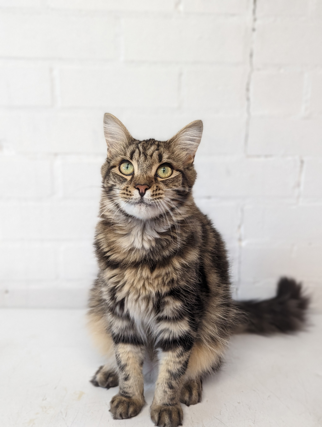 Simon is an incredibly handsome and sweet young man of just 7 months of age with a gorgeous mane befitting a lion and a glorious fluffy tail to match. He is a wonderful mix of cuddly and independent and loves giving and receiving cuddles just as much as he enjoys a quiet chill on the windowsill in the afternoon sun.