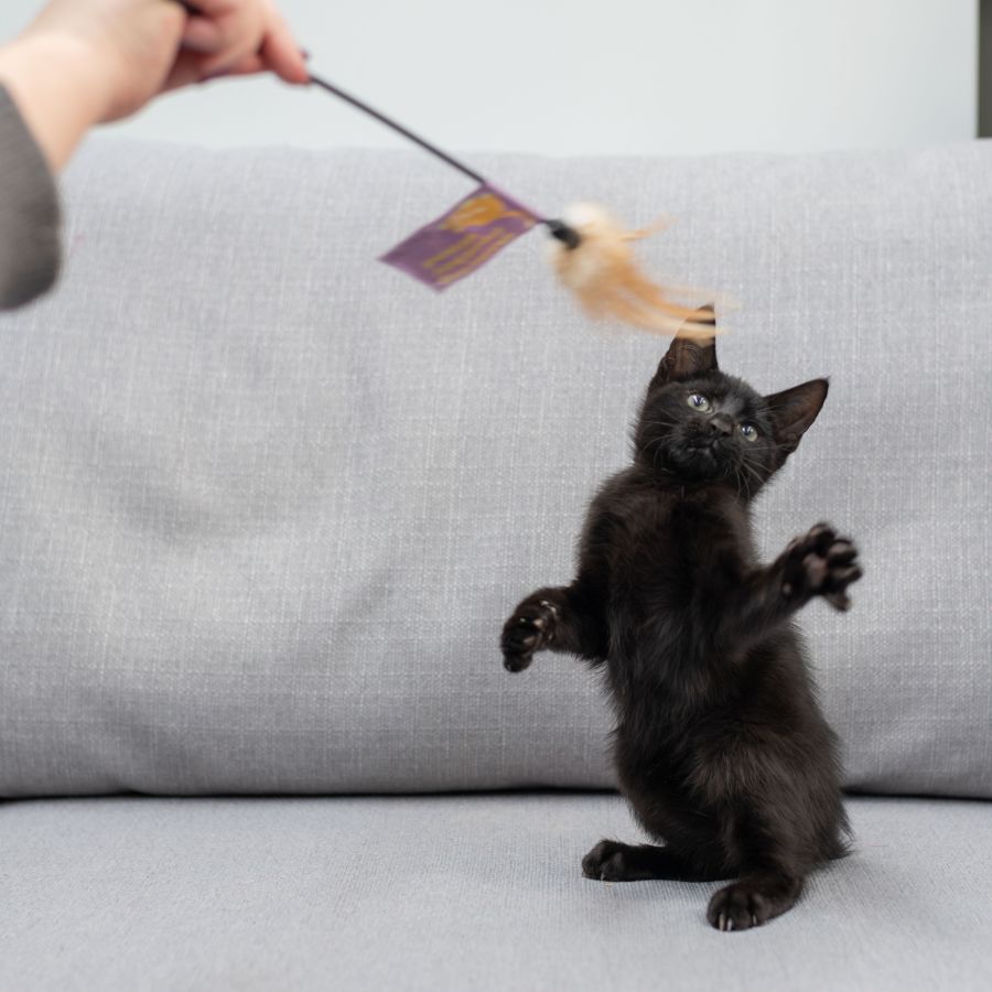Meet Kyle, a delightful little kitten who cuts quite the charming figure with his long legs and sleek black body. His cute face is like a mini-version of a majestic black panther. A case of mistaken identity had us initially thinking Kyle was a 'Kyla', but this little gentleman has a charm all his own.