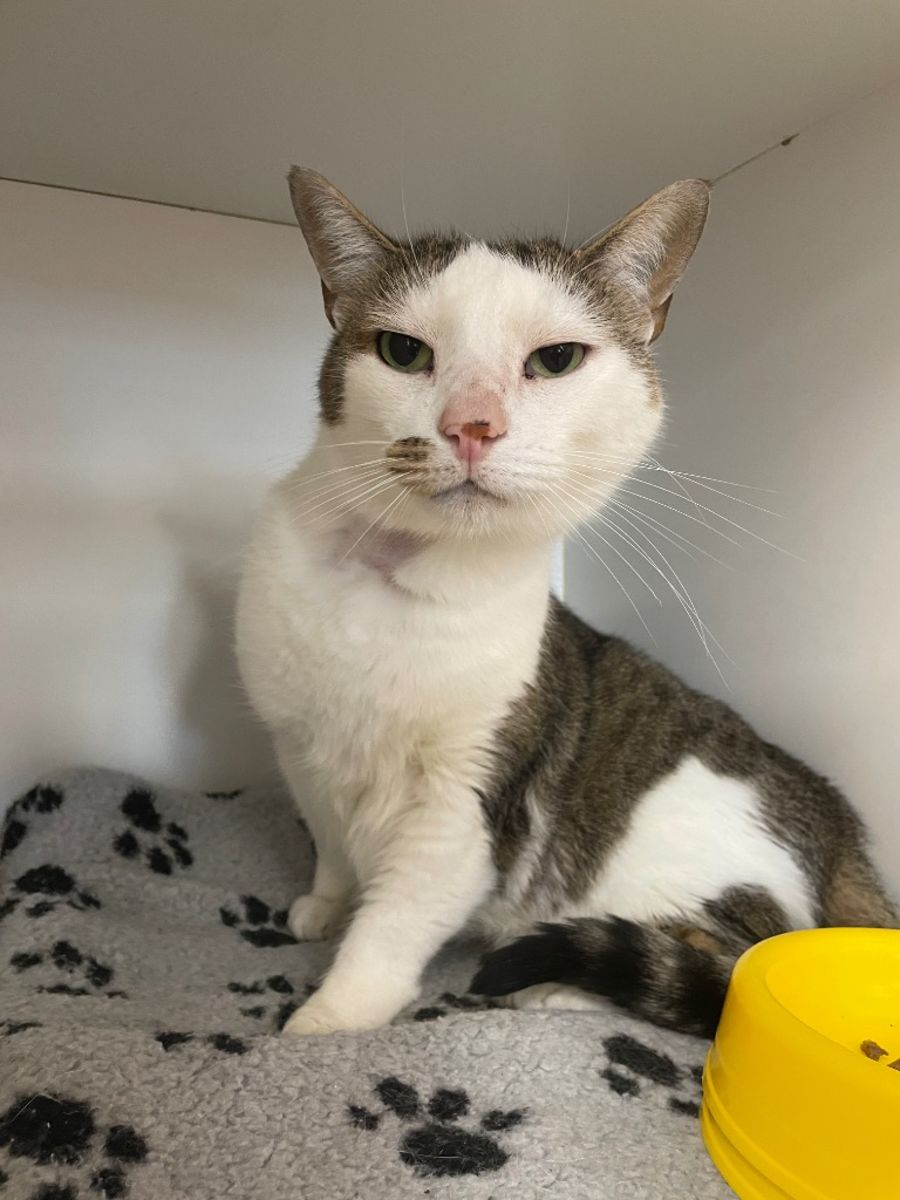 Introducing Lucky, a sweet senior feline with a heart brimming with love. With his golden years shining bright, Lucky is looking for a family to give him the tenderness he's ready to reciprocate.