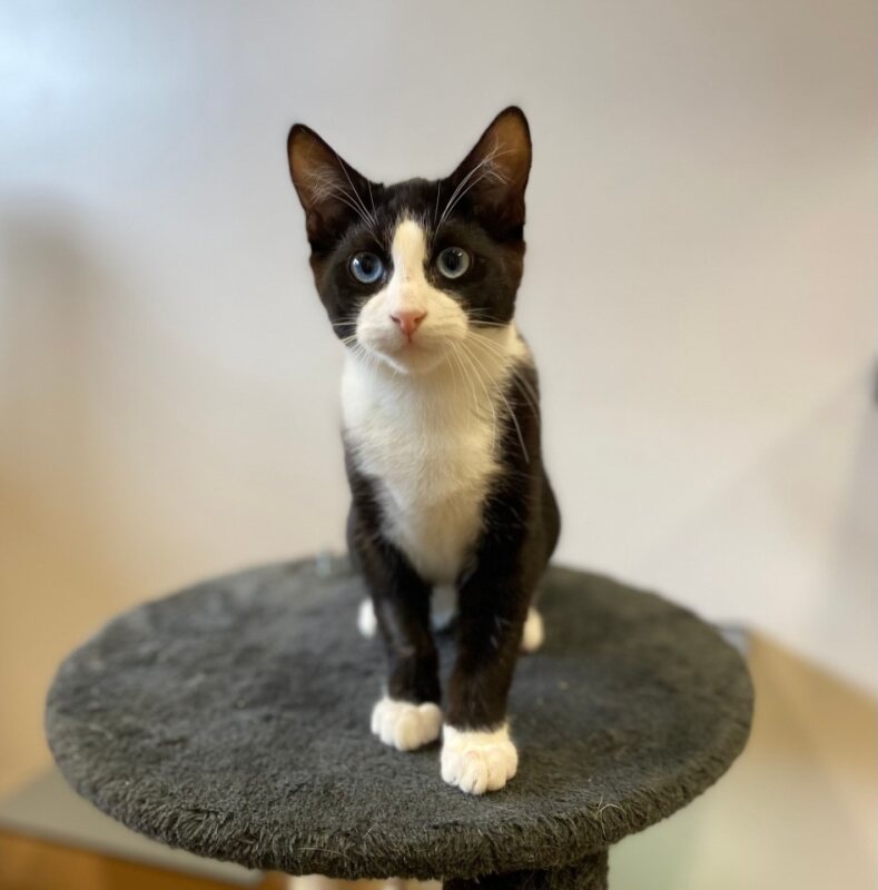 Your potential new best friend! I'm a kitten with a heart as big as my personality. I'm sweet, always ready to nuzzle up and share some purrs. My friendly nature means I get along with everyone. I'm playful and curious, always ready for a new adventure or a new toy to chase. My goofiness will make you laugh, and my energy will keep you on your toes. I'm also smart, quickly learning the rules of the house. With all these qualities, I'd make the perfect addition to any family. So why wait? Come and adopt me, Ferrari, and let's start our wonderful journey together! Indoors Only