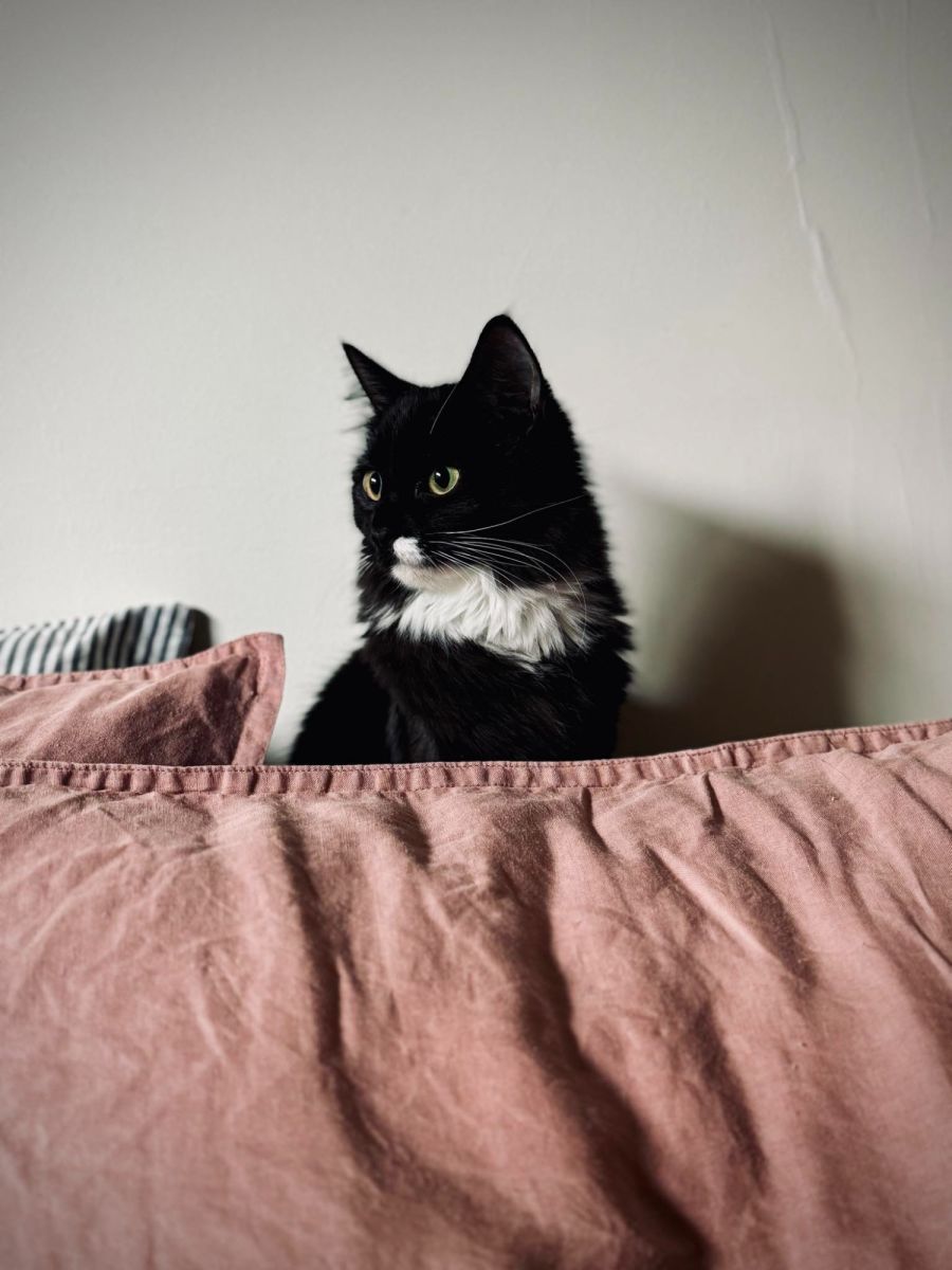 Meet Chicken Wing, a playful 6-month-old, black and white domestic medium hair feline with captivating big yellow eyes. She's a kitten with a heart full of adventure, eager to impress any audience with her playing skills, especially with her favourite toy mouse.