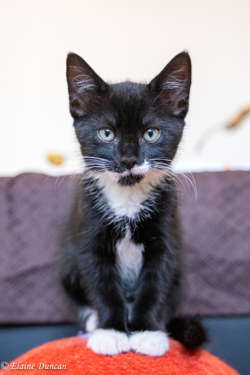 Miss Sundae is an expert climber and most definitely not scared of heights. She will appear atop many high things and is rather proud of herself for her feats. She is playful and happy to create her own games as required, having found her own favourite toy...a shoelace from a discarded shoe which she is often seen carrying places with her happily.