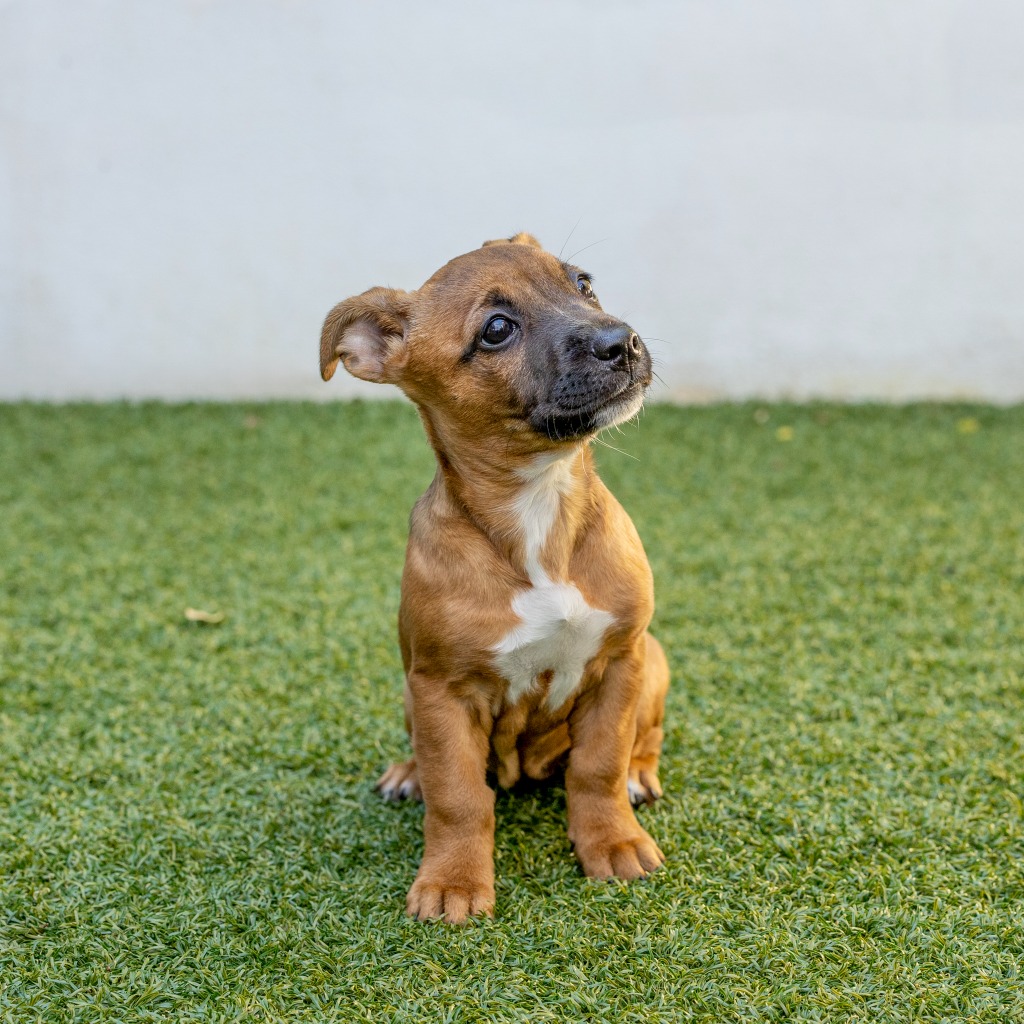 Met Zoe. This confident and adventurous little pup may be small, but that doesn't stop her. She quickly mastered the stairs in her foster home and bosses her brother around when wrestling and playing. While Zoe is full of sass, she is respectful of the older foster dog she is living with and enjoys playing with her as much as her brother. Zoe is cuddly and loves following her foster dads about. She would suit a home with company in the form of another dog or people who will treat her like the princess she is. Given her young age, Zoe will need a family who have time, love and patience to invest in her development. When fully grown, Zoe will be small to medium in size.