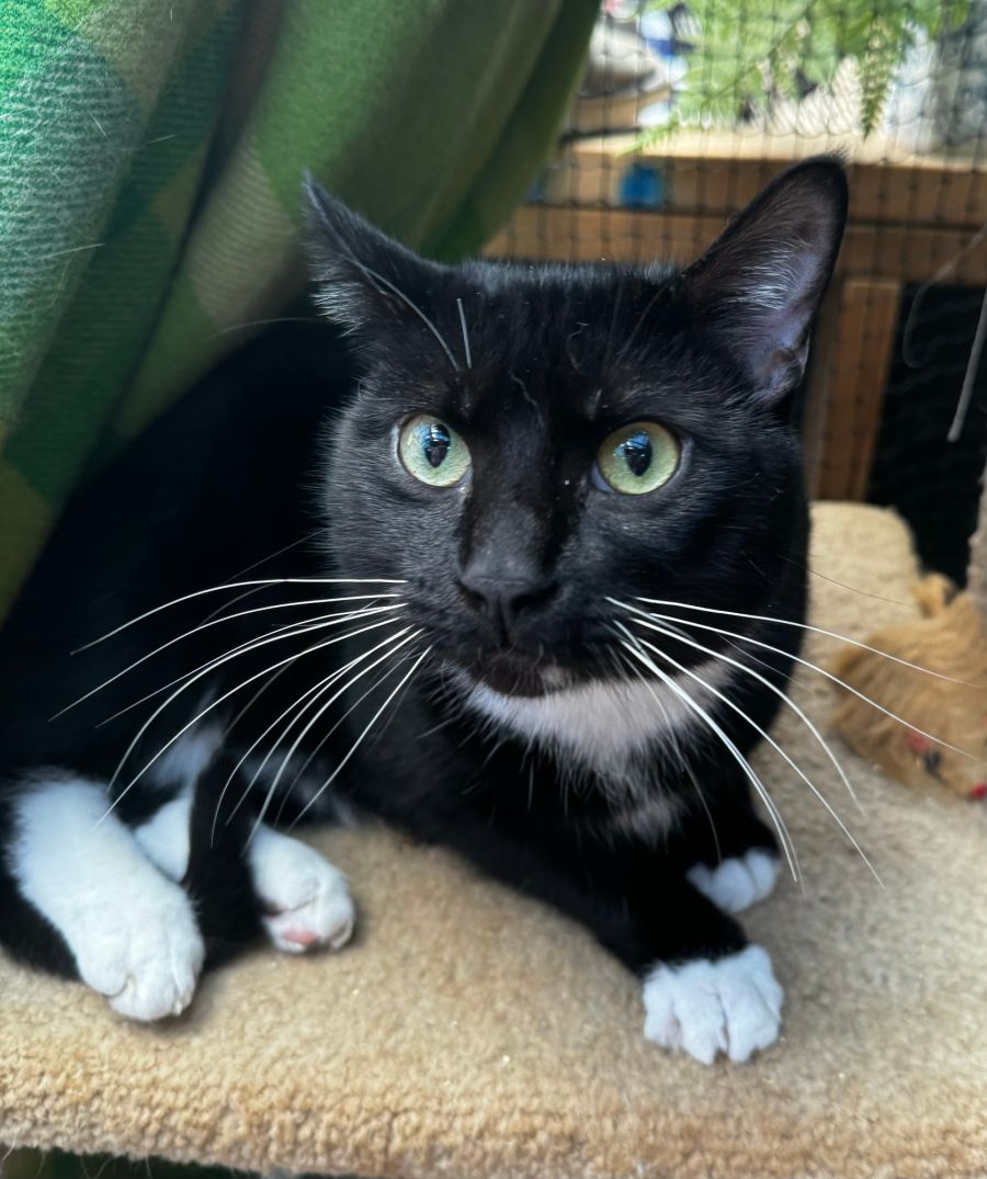 Though initially shy, when he has formed trust with you he loves neck scratches and he rolls over for belly rubs! Food is defiantly the way to his heart. He is super chill and will be a great companion cat for a patient person with a heart of gold.