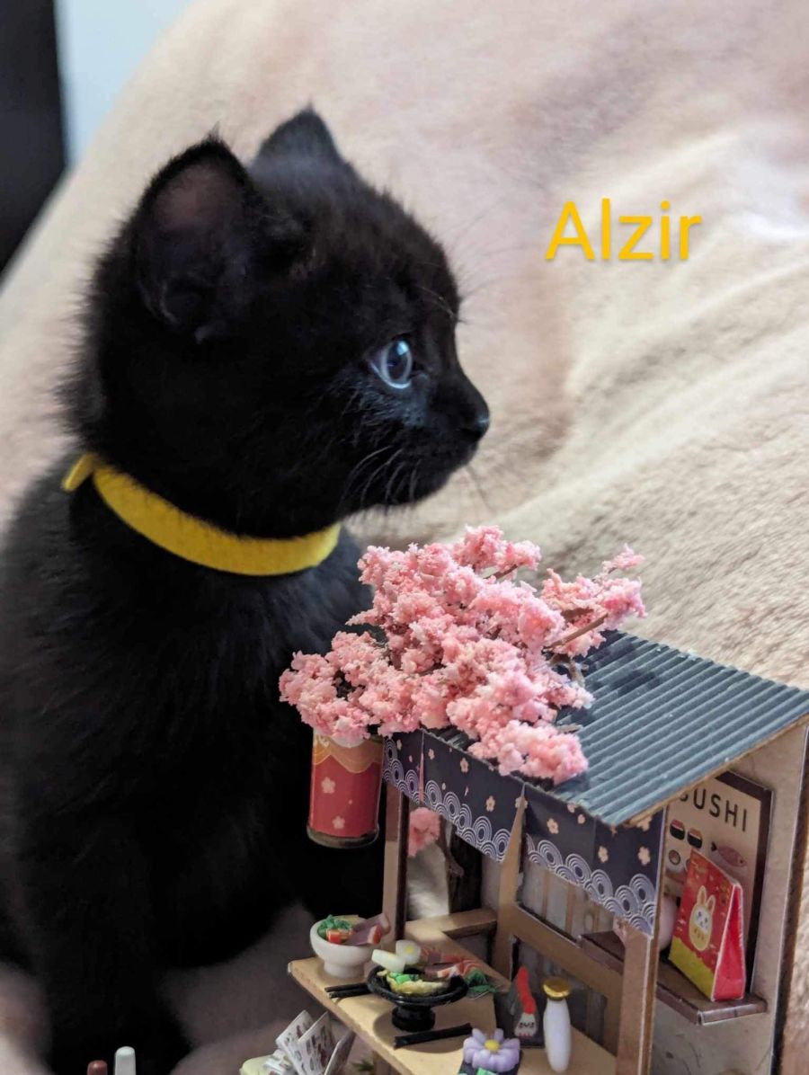 Alzir is our largest boy, he is named after a star in the Gemini constellation and his name means sensitive and kind. Alzir is warm and round and loves to nap and eat. He's relaxed, calm and gentle with his siblings.