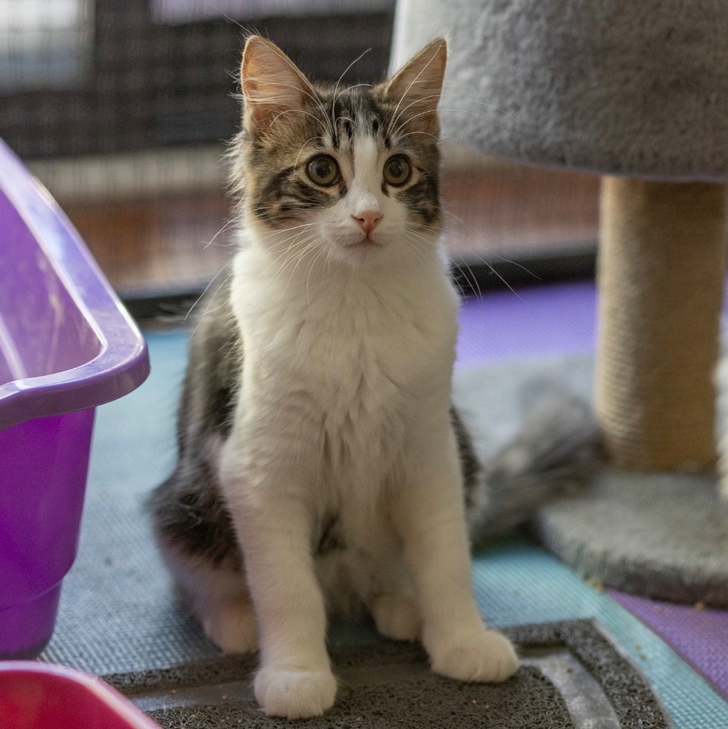 Hi I am Hank the tank, even though I am the biggest out of my two sisters I am definitely what they call a gentle giant. I love having warm cuddles and will follow you into every room just to be with you. I love playing with my fellow cat mates and love playing with people. I am very social and just want to be held like a baby and will purr the whole time. I am used to being handled as I was hand raised.