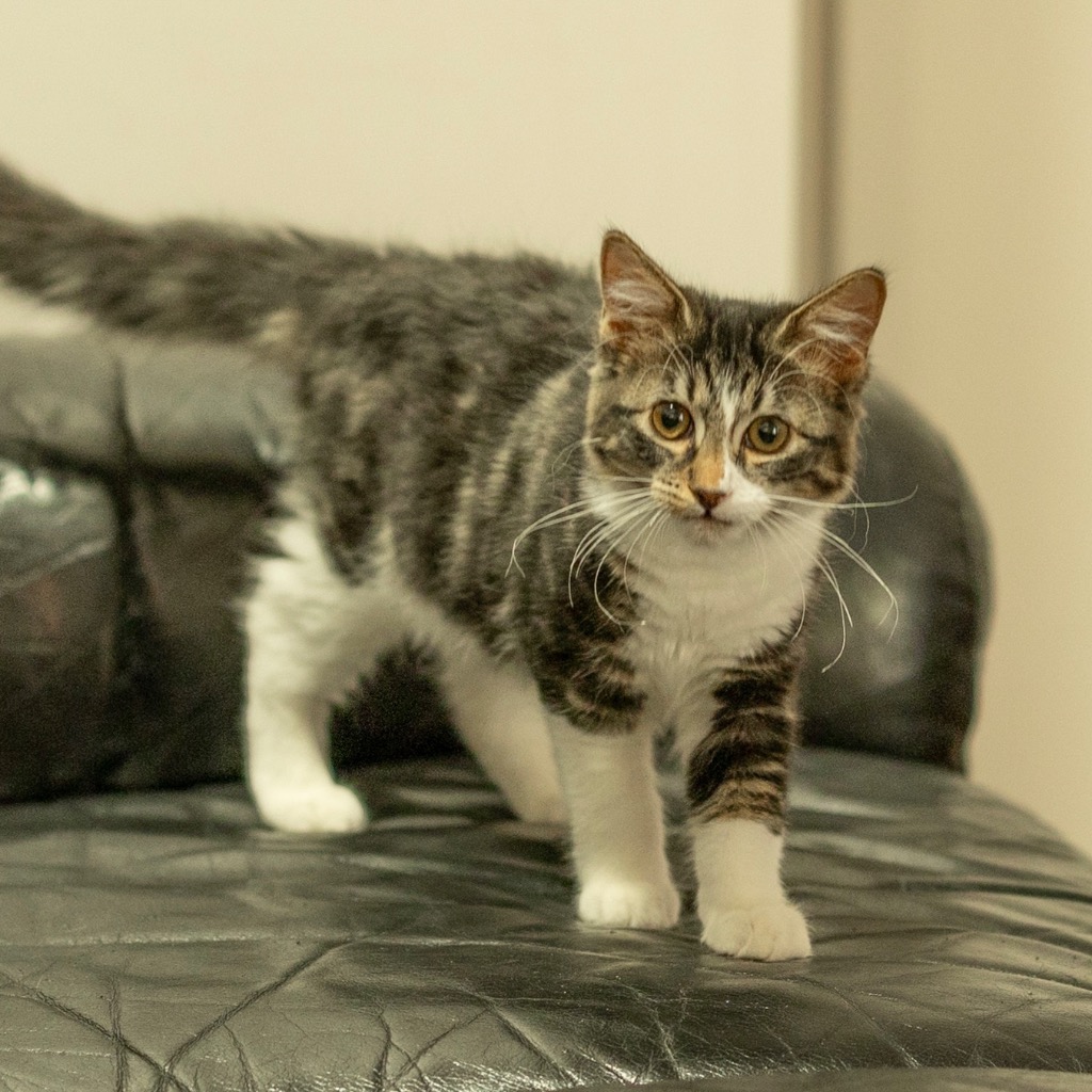 Hi I am Harmony, I am what you would call the middle child out of my brother and sister. As my name points out I am the harmony between everyone. I love playing and exploring everything and will smell anything I can find even dirty socks. I am very social with other cats and people. I love ending my day sleeping on the closet person I can find, purring like my live depends on it.I am used to being handled as I was hand raised.