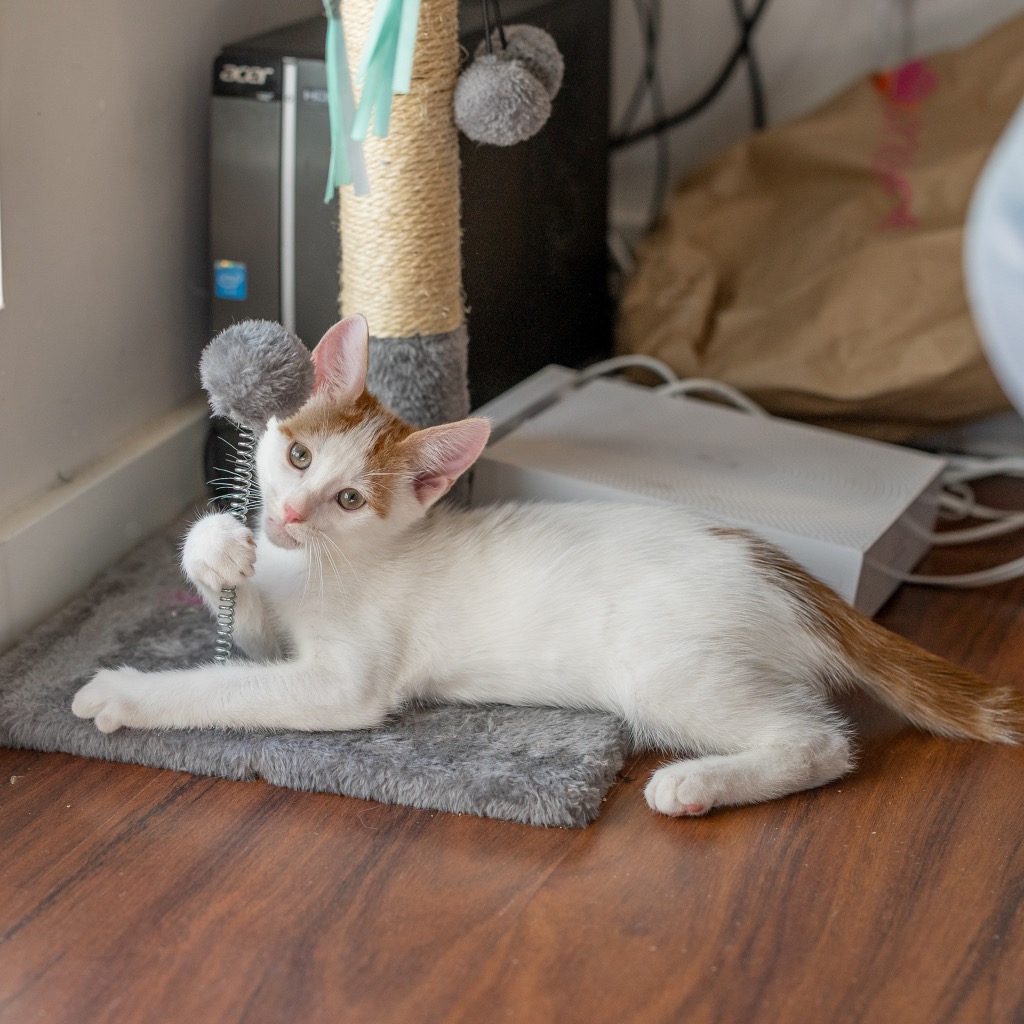 Looking for a furry friend who loves nothing more than cozying up on your lap? Meet Jones! With his calm demeanor and social nature, Jones is the perfect cuddle buddy for those quiet evenings at home. If you're craving feline affection, Jones is ready to be your loyal lap cat! Jones is a beautiful indoor kitten and is litter trained.